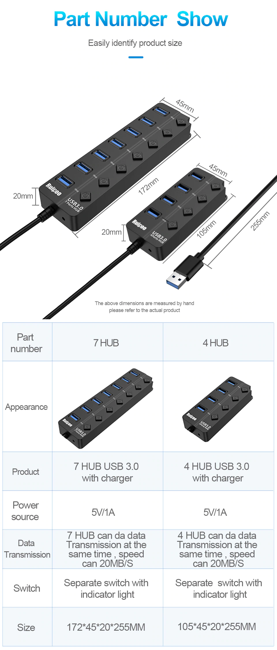 USB Hub 3.0 High Speed 4 Port USB 3.0 Hub Splitter On/Off Switch with EU/US Power Adapter for MacBook Laptop PC HUB USB 3.0